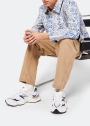 The 9060 sneakers from New Balance feature exaggerated design elements taken from the classic 990 series in a bold-yet-futuristic look. This Y2K-inspired design features a mesh and leather upper with a signature N logo, signature ABZORB cushioning, and EVA technology.